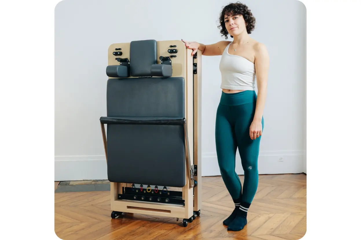 Kinésithérapeutes, ostéopathes, coachs sportifs ou studios : une alternative premium, pliable et optimisée aux reformers traditionnels non pliables.